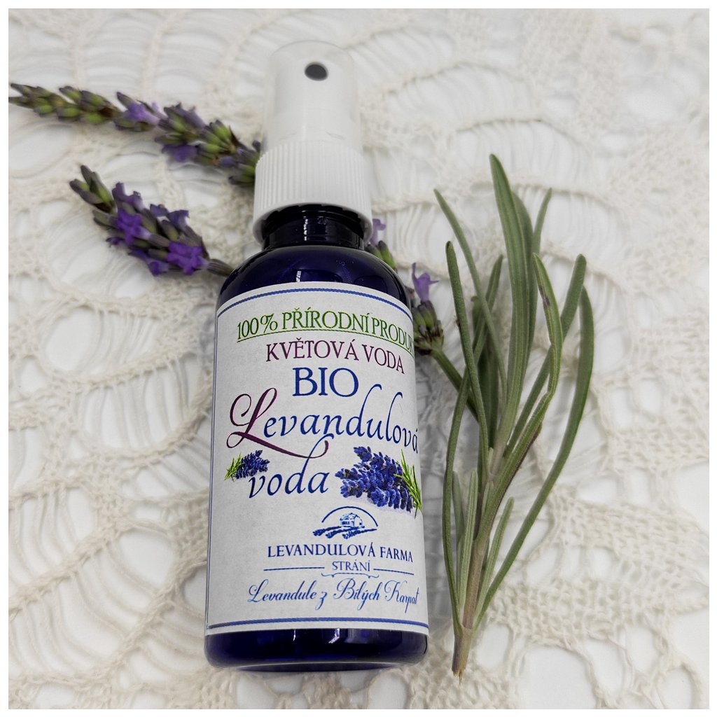 Květinová voda levandulová je vyrábíme parovodní destilací, to znamená, že kondenzovaná pára přešla přes levandulové květy. Vzniklý hydrolát je průhledný s libou levandulovou vůní, která popustí uzdu vaší fantazii. Říkáme mu „andělská vůně“. Zpříjemní vám žehlení, mytí podlah, klidně přidejte jako aviváž, nezanechává skvrny. Jemné stříknutí na polštář vás zklidní po celodenní námaze. Díky praktické lahvičce s rozprašovačem je vhodná pro okamžité osvěžení ať už interiéru vozidla pro řidiče, taktéž při cvičení. Květinová voda levandulová je v malém balení aby se vešla do kabelky, a na noční stolek máme pro Vás větší balení levandulové vody